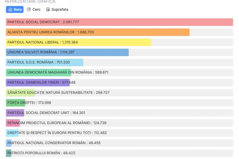 Rezultate alegeri parlamentare 2024 Camera Deputaților, după numărarea a 99,60% din procesele-verbale:
