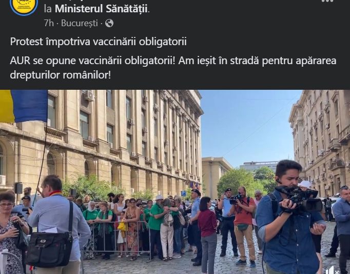 Declarațiile lui Simion sunt parțial contrazise de postările de pagina oficială a AUR. Chiar dacă nu-și atribuie organizarea, formațiunea politică și-a mobilizat susținătorii pentru acest miting și a afirmat că ”ieșim în stradă împotriva vaccinării obligatorii”.