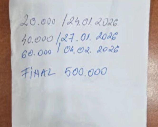 Bilet scris de avocată cu defalcarea și termenele de plată a șpăgii.