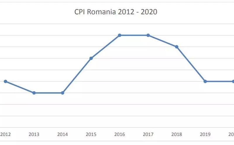 Cu un scor de 44 de puncte din 100 (față de 66/100, cât este media), România rămâne în continuare în top trei cele mai corupte ţări din Uniunea Europeană, la egalitate cu Bulgaria și Ungaria.
