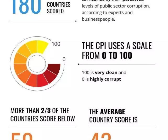 La nivel global, indicele mediu al percepției asupra corupției este de 43/100.